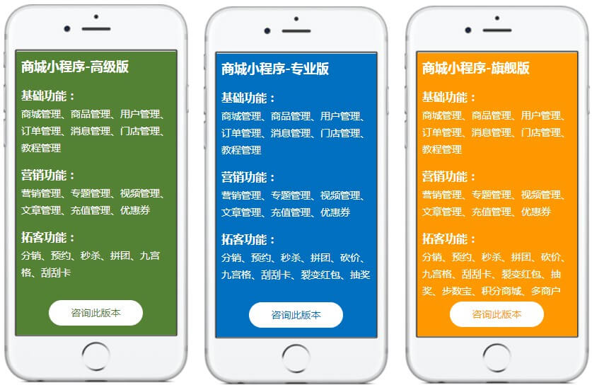 选择您想要的商城小程序版本